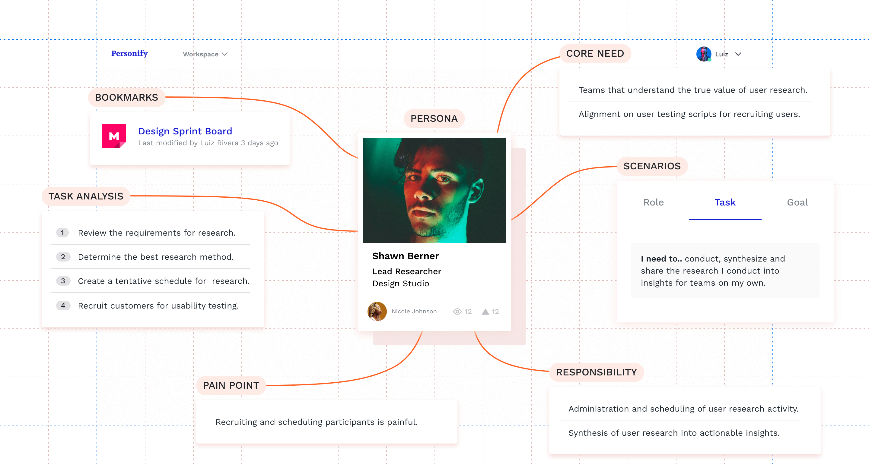 Your persona is a living understanding of your user. Track the changes on the priority and status of your user’s tasks and goals over time.